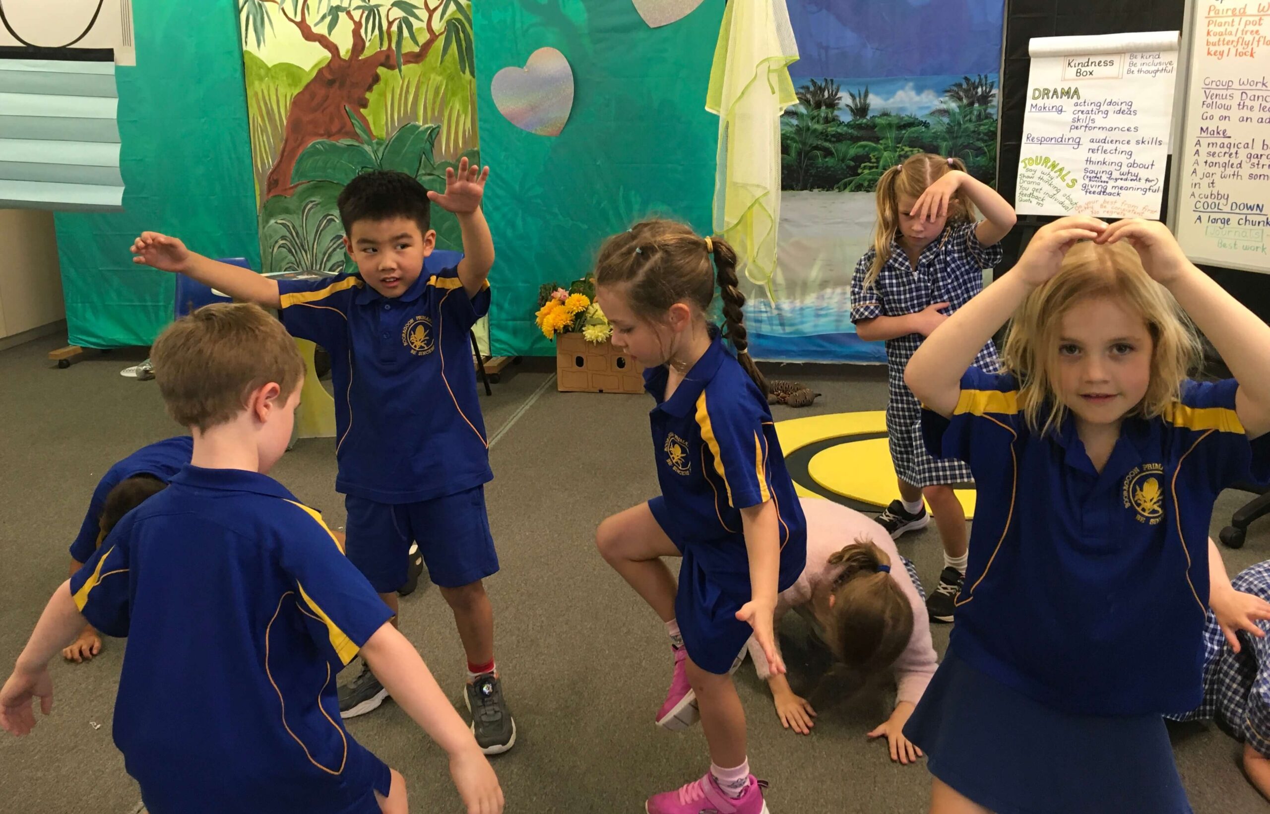 At Booragoon Primary School, our Drama program is built on the foundations of Protective Behaviours. We foster a safe, supportive space where every student feels valued. The guiding principles — that everyone has the right to always feel safe, and that we can talk to someone about anything, no matter what — shape every lesson and interaction.