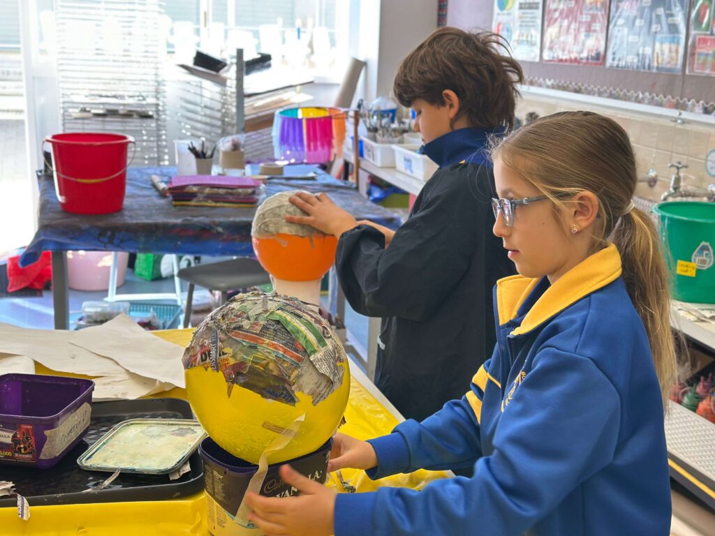Students from years 1-6 engage in a diverse range of art activities using mixed media, including drawing, painting, sculpture, printmaking, textiles, and digital art. Through these experiences, students explore the elements of art and design, experiment with materials and most importantly, learn to have fun.
