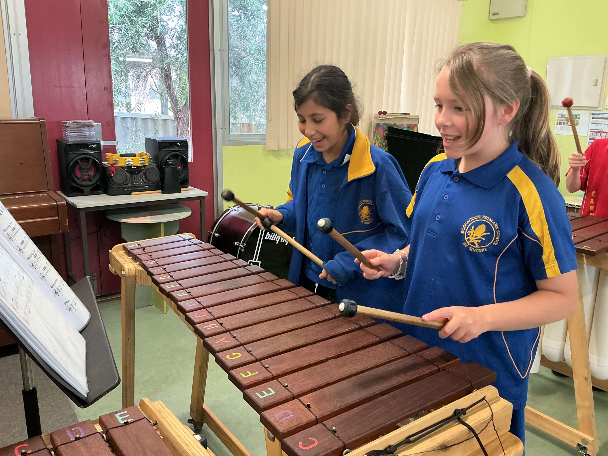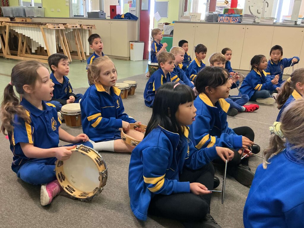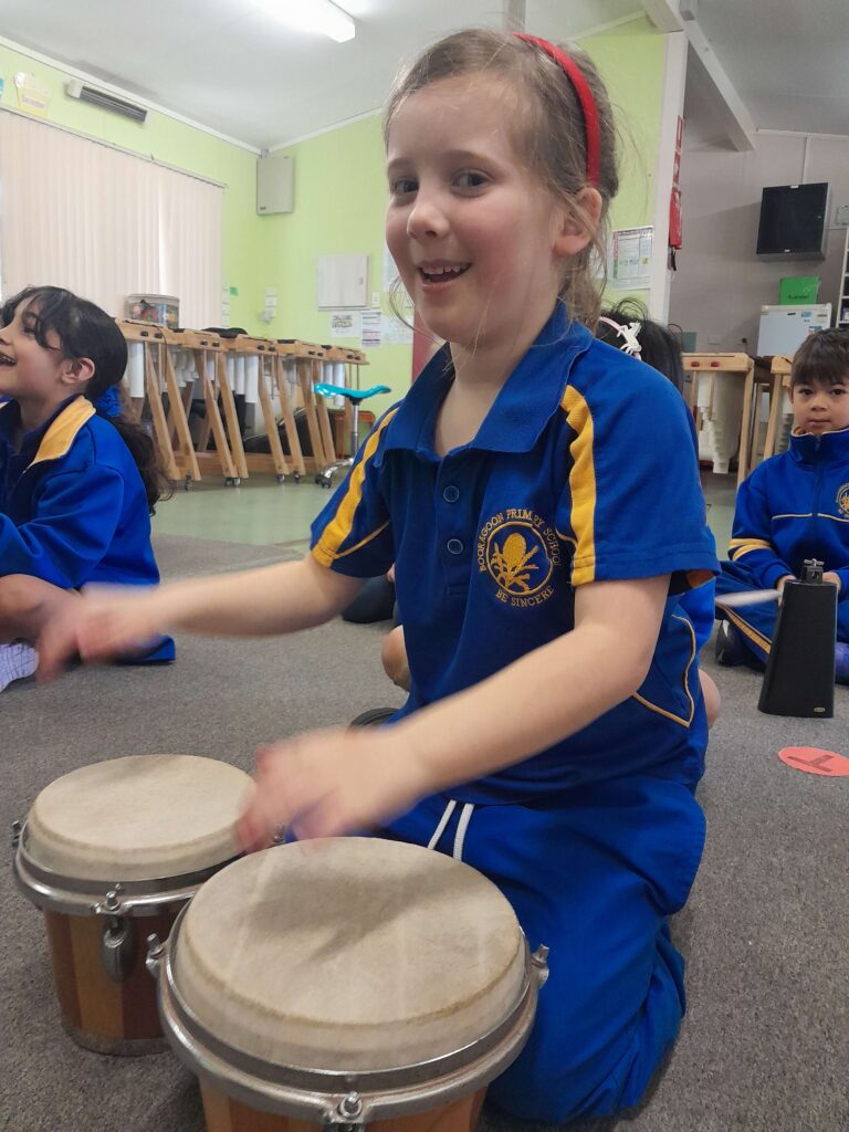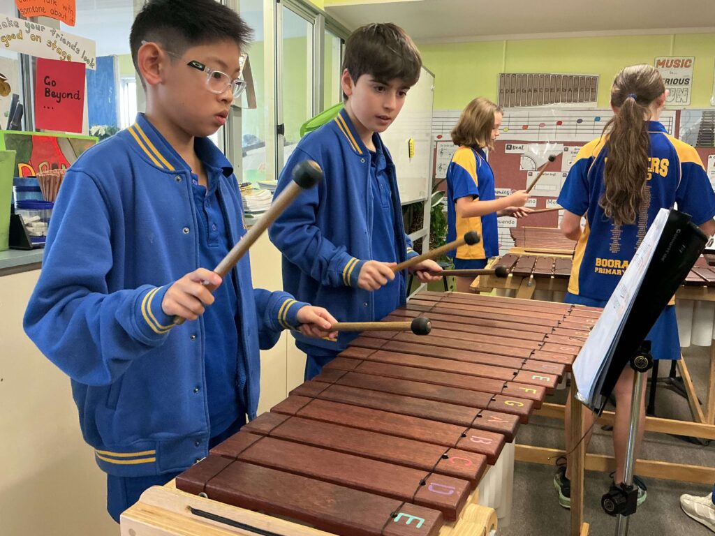 Booragoon Primary School delivers an innovative and vibrant music program that nurtures creativity, builds confidence, and inspires a lifelong love of music. Students in Years 1–6 participate in weekly lessons that are active, hands-on and immersive, drawing on the Orff Schulwerk and Kodály approaches to develop skills in beat, rhythm, pitch, notation, performance and composition.