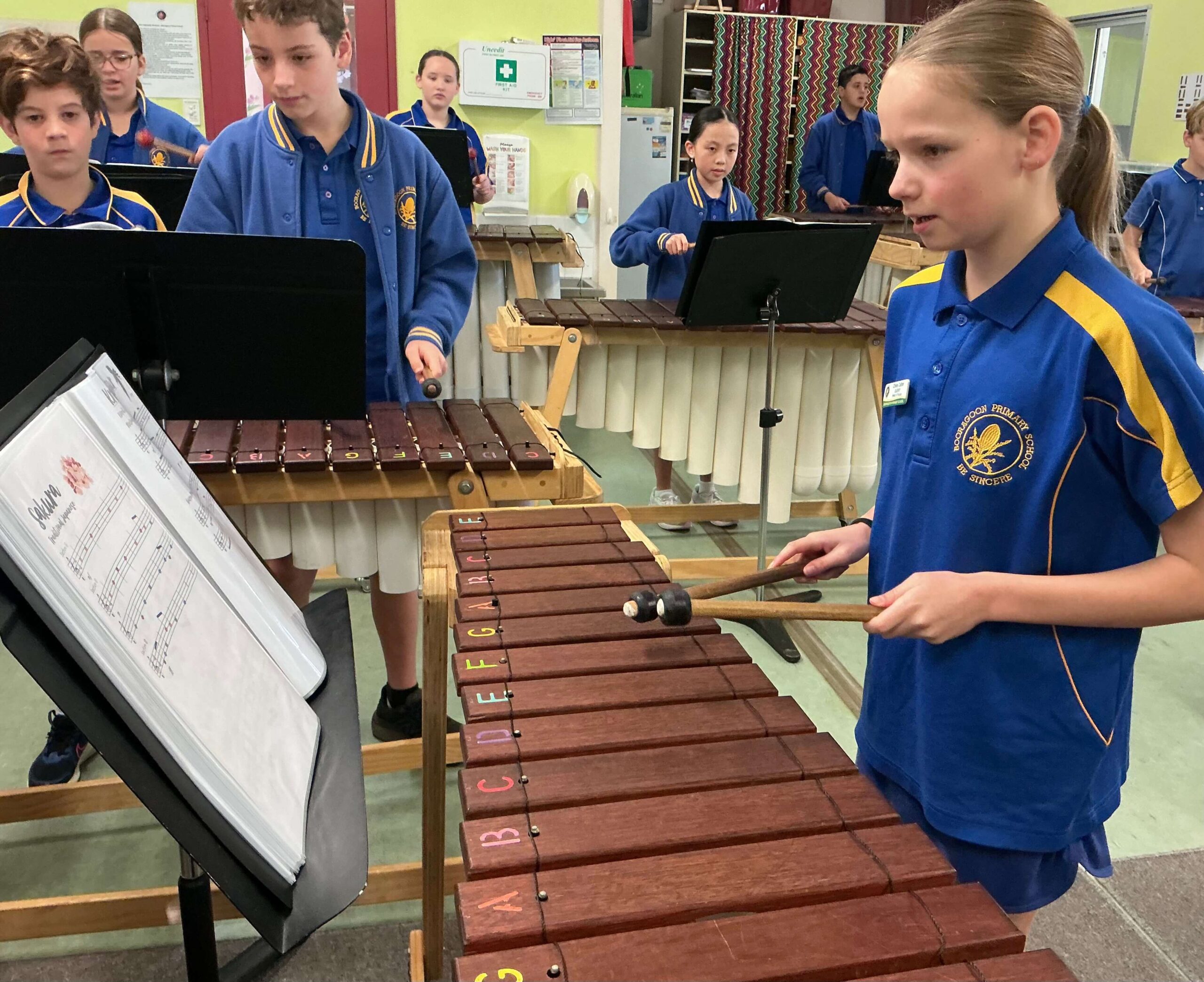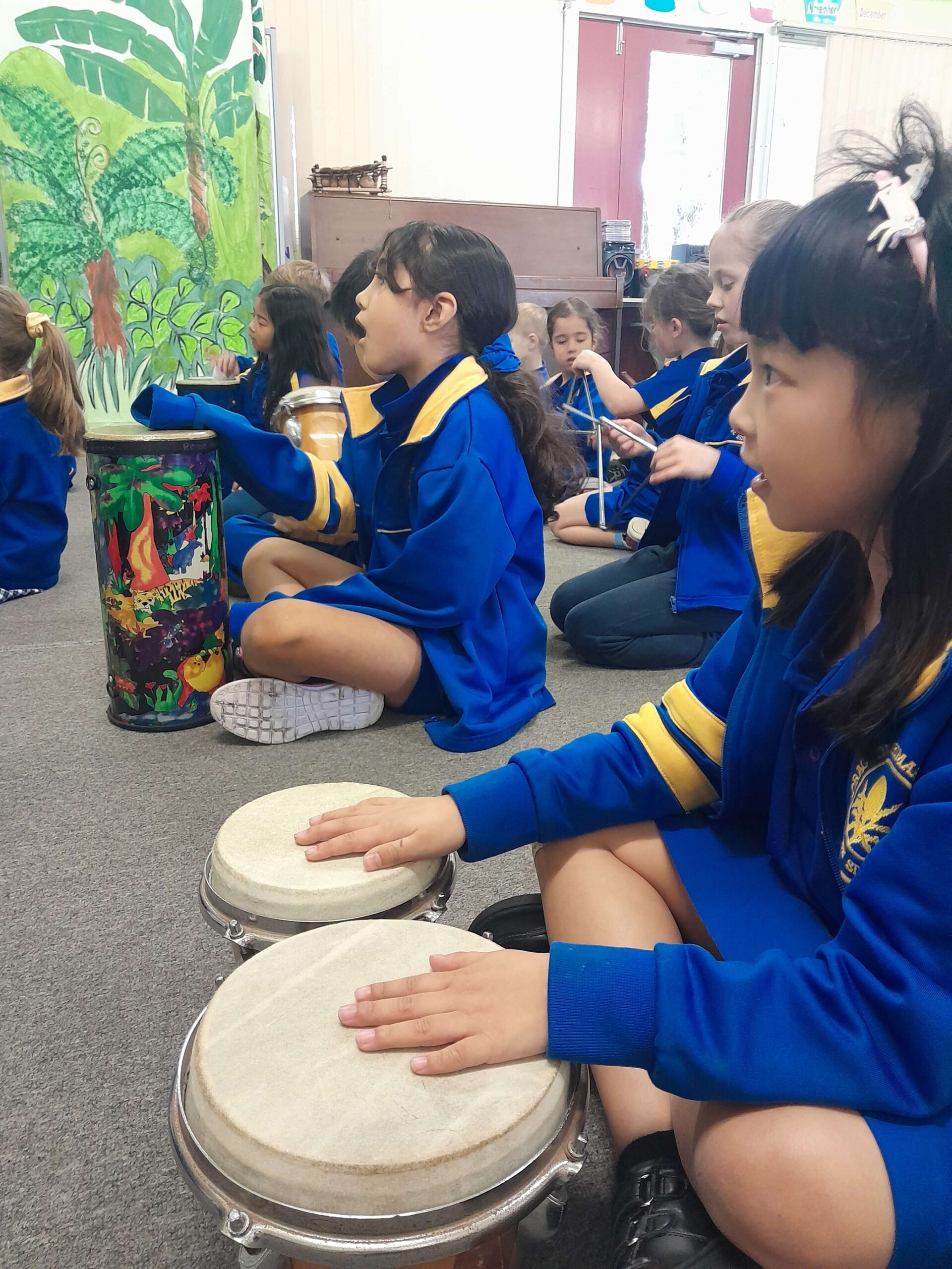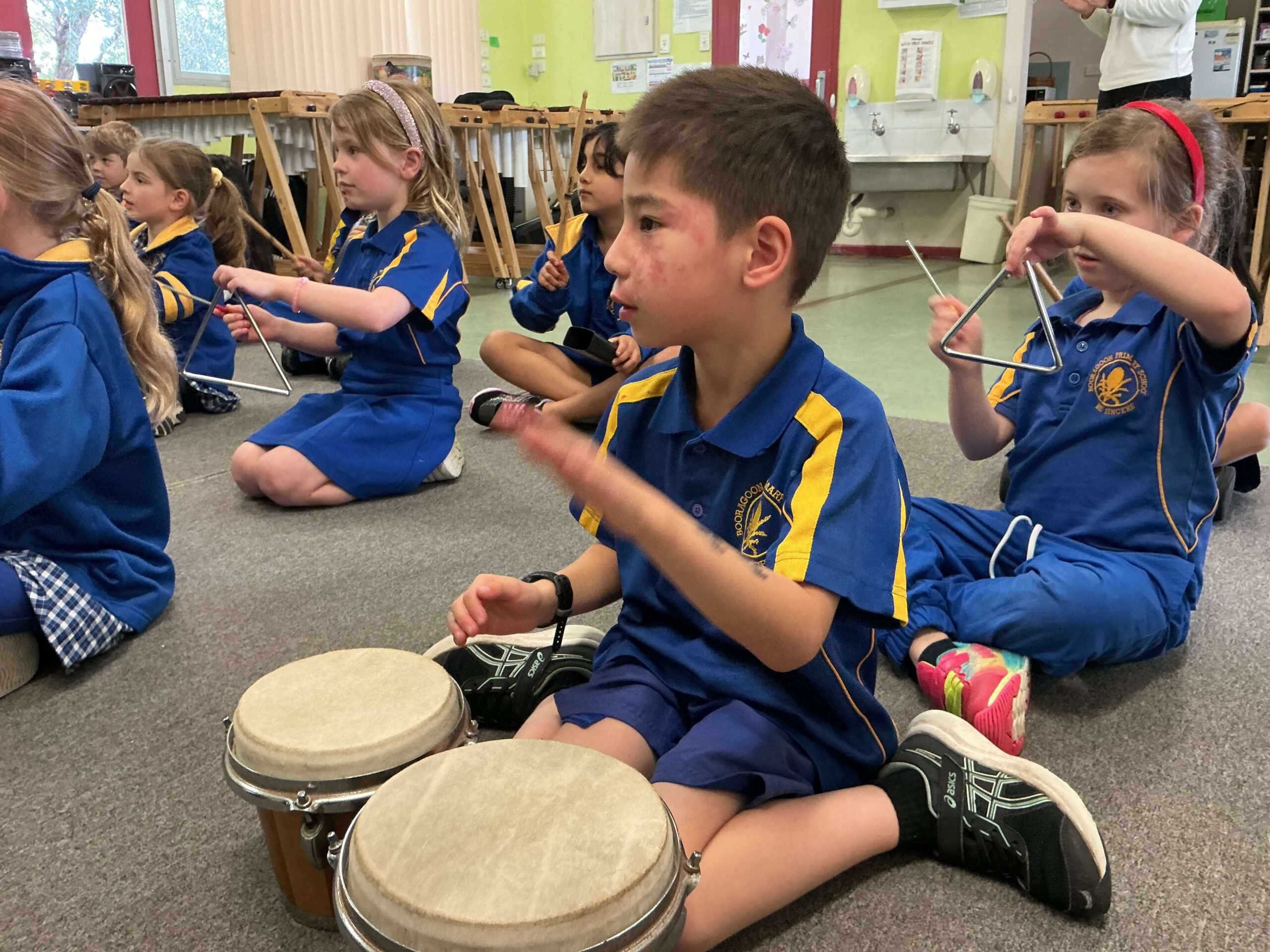Booragoon Primary School delivers an innovative and vibrant music program that nurtures creativity, builds confidence, and inspires a lifelong love of music. Students in Years 1–6 participate in weekly lessons that are active, hands-on and immersive, drawing on the Orff Schulwerk and Kodály approaches to develop skills in beat, rhythm, pitch, notation, performance and composition.